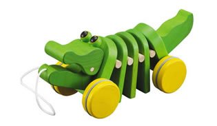 Explore the wild side with this adorable alligator! While being pulled, the wooden pieces make rhythmic click-clack sounds.